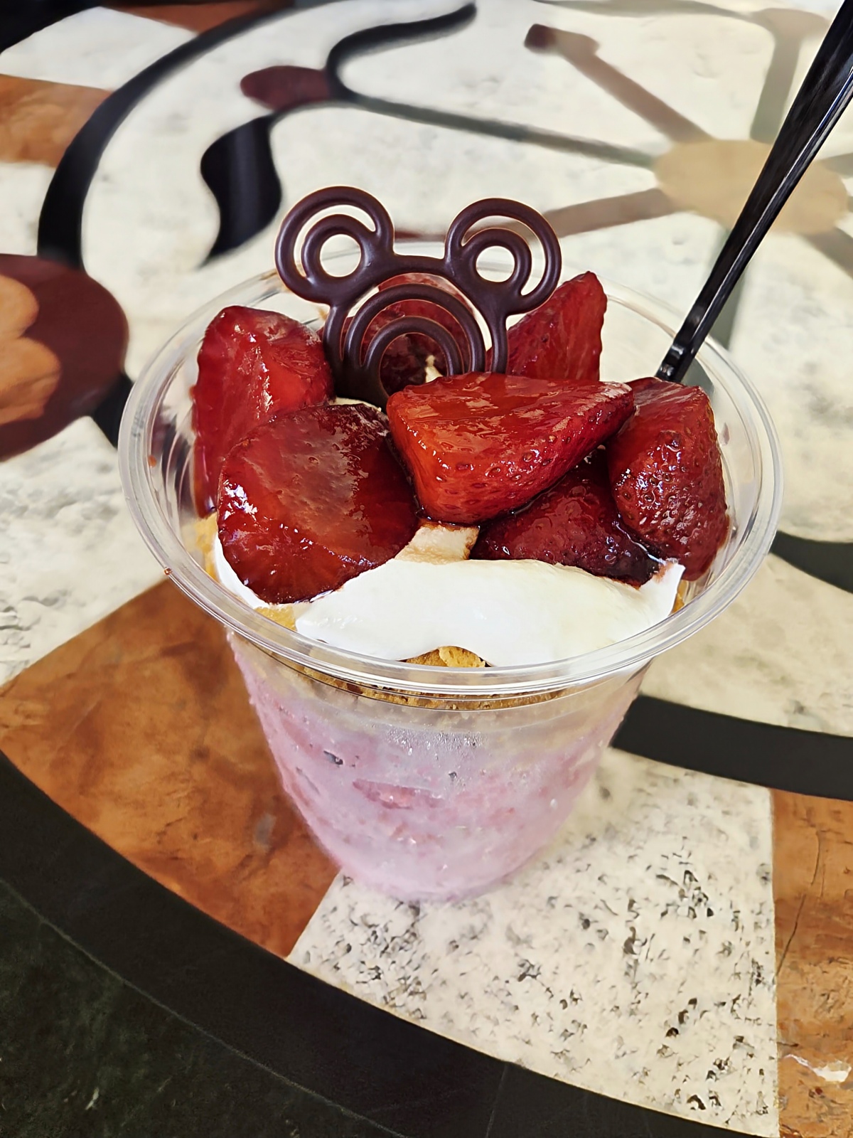 ゴンドリエ・スナック。 夏食べそこなってたストロベリー&バルサミコのグラニータをようやく🍓🍫ストロベリーのグラニータ、サクサク食感の薄焼きクッキー、なめらかなホイップクリーム、苺の層になってるんだけど評判どおり美味しかった🥰グラニータの食感好きかも🫶バルサミコソースを絡めた苺がごろごろ乗ってたのも良かった🤗