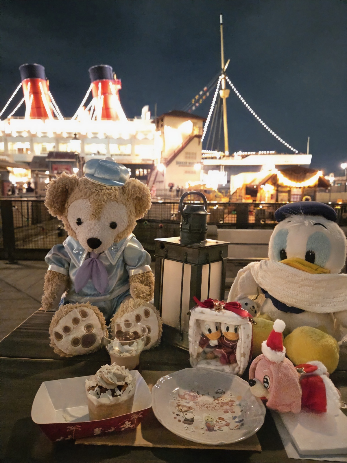シークレット・オブ・スノーウィーデイ。 チョコと紅茶のムースとカフェモカマフィンとスーベニアプレート🧸☃️カップデザートは下からチョコムース、ラズベリーソース、紅茶のムースの層になってたよ❣️マフィンはカフェモカクリームとチョコチップ入り。両方とも降り積もる雪をイメージしたホワイトチョコがトッピングされてました。美味しかったよ〜🩷