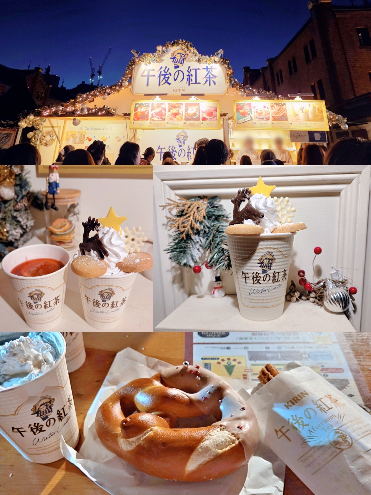 行くきっかけはTLに流れてきた午後の紅茶のメリーホワイトミルクティー☕見た目につられた🤭あとホリデーフルーツティー(ベリー&ベリー)とミルクティープレッツェルとアールグレイ ティーチュロスを買ったよ🩷ミルクティーはクッキー3枚にたっぷりのホイップクリーム、トナカイや結晶や星形のチョコがトッピングされています。ここってスプーンとかあったのかな?ホイップ攻略しないと飲めないからクッキーにディップしたりプレッツェルにディップしたり。プレッツェルがもともとこういうものなのか分からないけどミルクティーに少し浸して食べても美味しかったよ🫶チュロスは細みでサクサクだった❣️フルーツティーも締めにちょうど良かったな🍓