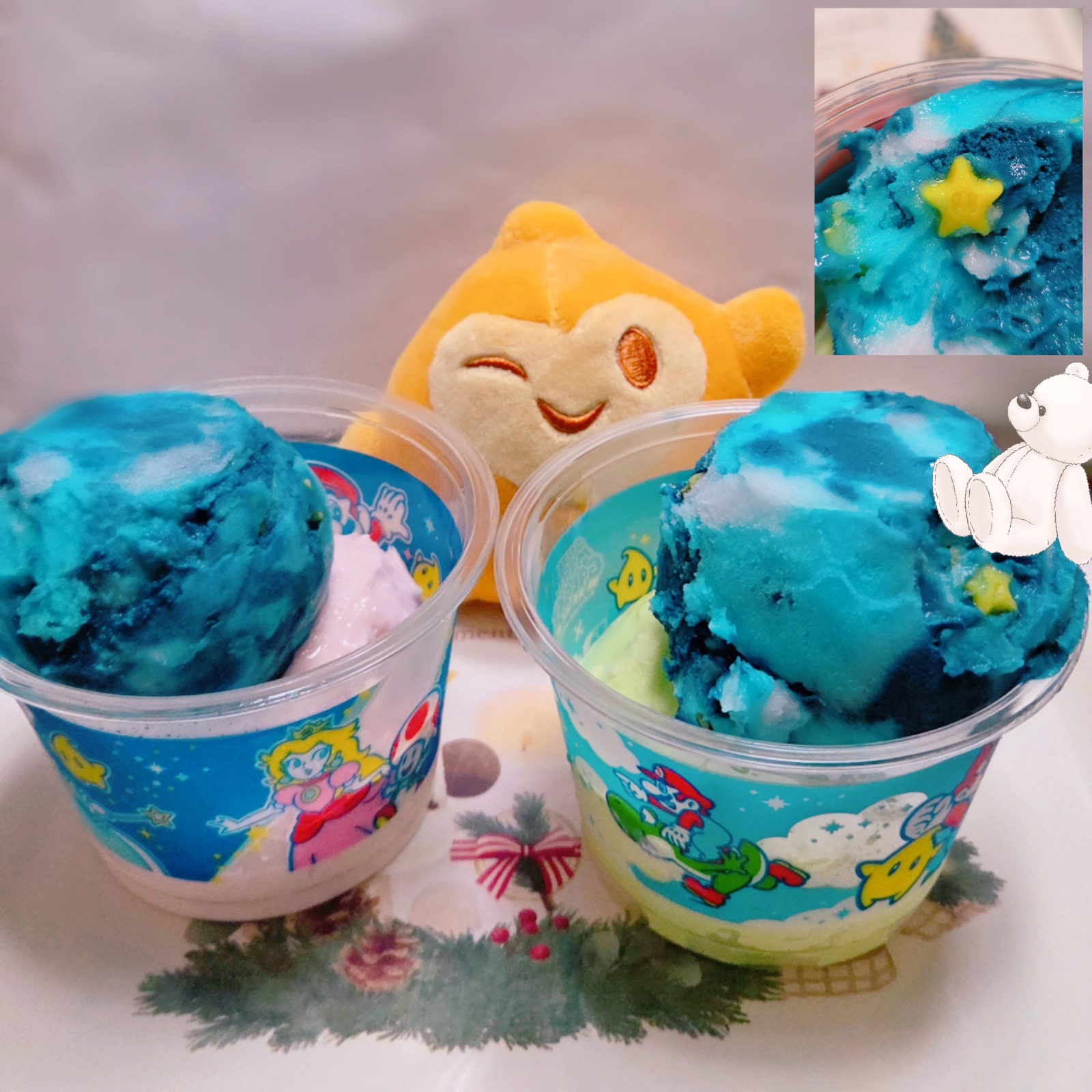 マリオとサーティワンがコラボした新作フレーバーのコットンフルーツギャラクシー💫パワースターのチョコが可愛くて食べてみたんだけど美味しかったよ🌟